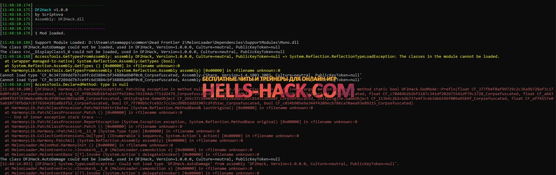 Актуальный чит DF2Hack для Dead Frontier 2 2025 года. Это мощный мультихак, в котором ты найдешь функции: НоКлип (Ходьба сквозь стены), Автоматический урон (Аналог килл ауры), Режим призрака (Зомбаки тебя не видят), Год мод (Неуязвимость), авто-лут (быстрый сбор добычи). Юзай хаки по выбору, используя многофункциональное меню, например, бессмертие + авто лут, за который отвечает Auto Looter. Для инжекта тебе потребуется Melonloader, т.к. игра создана на движке юнити.