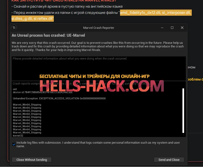 - Запусти игру Marvel Rivals и чит, если написано "not found", тыкни на "refresh"
