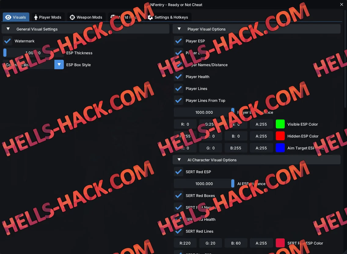 Актуальный чит RONFentry для Ready or Not, с несколькими десятками потрясающими функциями: аимбот, есп, модификация оружия, отключение отдачи, неограниченный боевой запас, разблокировка всех предметов, телепорт, спидхак, хождение через стены возможность, контролировать подозреваемых и управлять игровым мирок. В меню доступно более чем 60 рабочих хаков, которые ты можешь комбинировать, тем самым улучшить для себя игру.